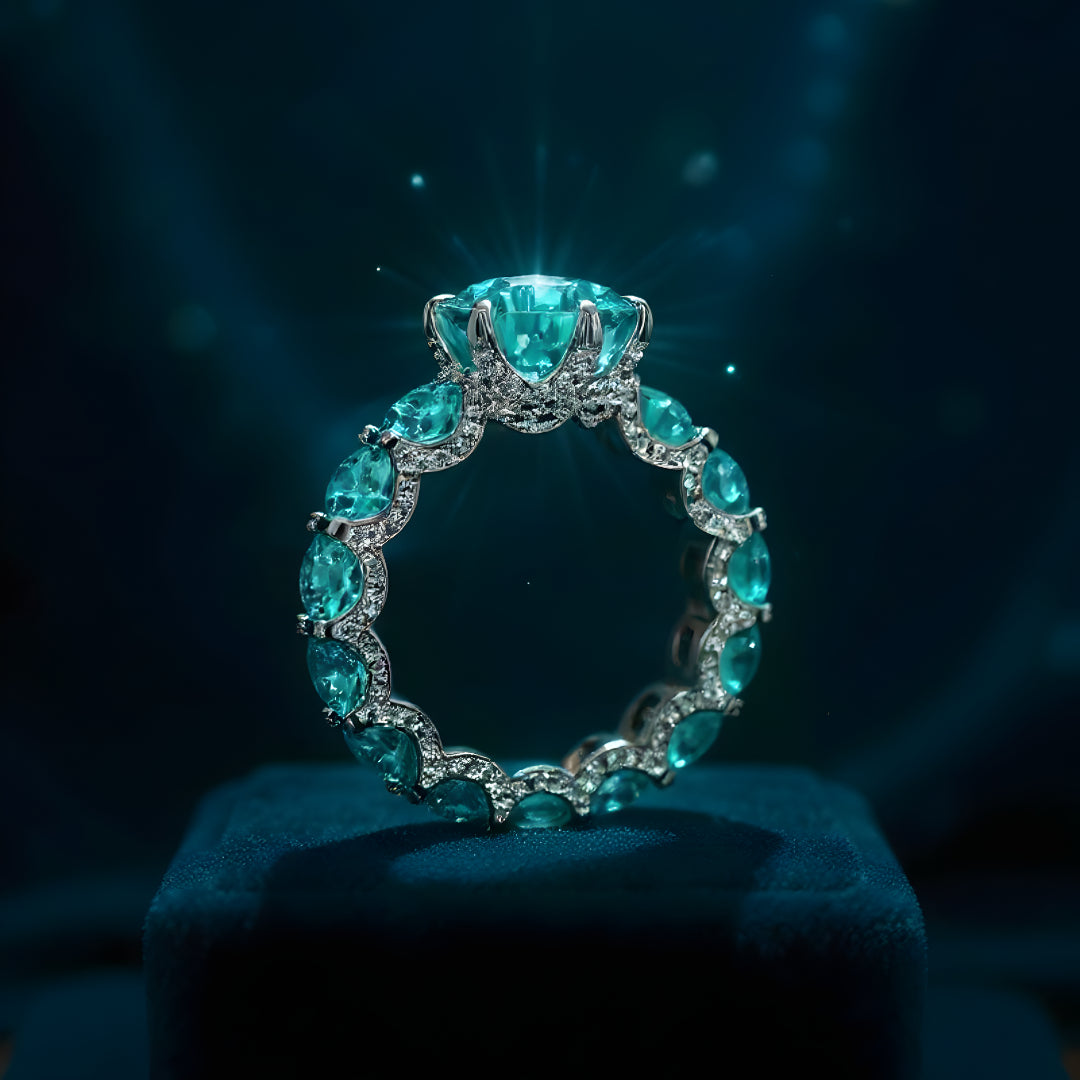 The Deluxe Ring stands as a true jewelry masterpiece, its central gem radiating exceptional brilliance and quality, while the delicate arrangement of surrounding smaller stones further elevates and enhances its overall beauty.